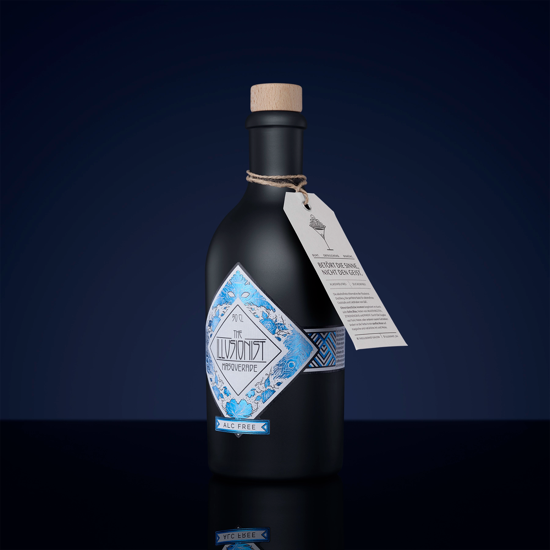 VIBRANT. REFRESHING. BOHEMIAN. The Illusionist Masquerade alcohol-free spirit serves as a perfect foundation for any alcohol-free cocktail thanks to its medley of fresh flavours of acacia blossoms, lemongrass, and pimento. With the addition of tonic water or any other citric mixer, its deep blue transforms into a gentle pink.