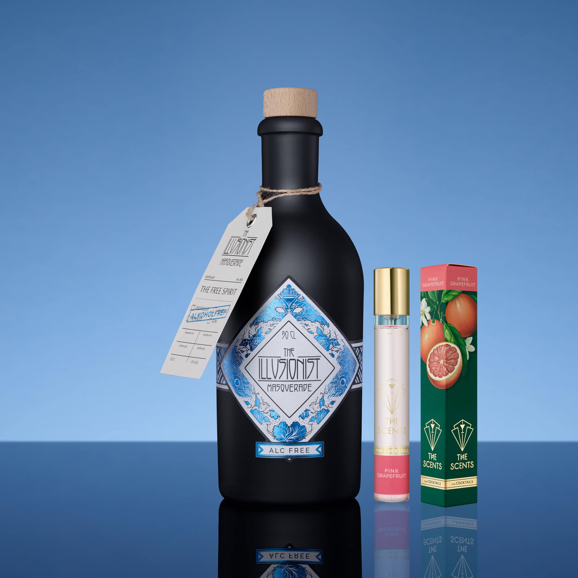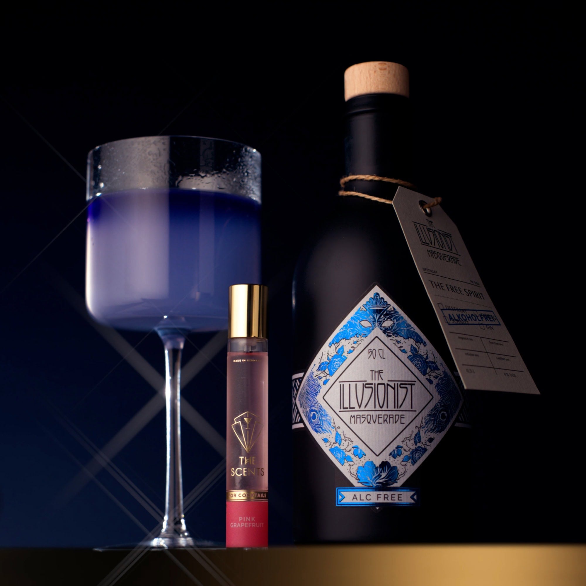 The Illusionist Masquerade: ons meesterwerk zonder alcohol en de ultieme basis voor alcoholvrije cocktails. Een magische mix van acaciabloesem, citroengras en piment geeft elke mocktail een verfrissende, bohemien twist.